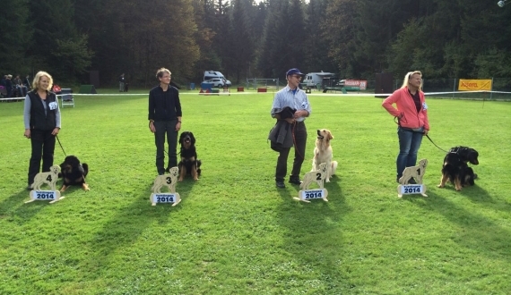 Mit knapp 18 Monaten nahm Nala an ihrer ersten Ausstellung teil. In der Jugendklasse wurde sie von der Zuchtrichterin Beatrix Feix mit der besten zu erreichenden Bewertung „sehr gut“ eingestuft. Dazu erhielt sie auch noch eine Platzierung, so dass wir uns über ein sg3 freuen konnten. Nala wurde als freundliche und aufmerksame Hündin beurteilt, ihr sehr schöner Kopf mit den korrekten Behängen, die ganz korrekt getragene Rute, die sehr schönen Bewegungsabläufe und die sehr gute Struktur des Haarkleides wurden besonders hervorgehoben.