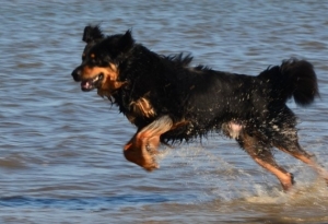 Er ist ein ausgeglichener, spritziger, zufriedener und somit perfekter Begleiter in jeder Situation, der gerne Auto fährt und schwimmt, den Frisbee liebt und motiviert auf dem Hundeplatz arbeitet.