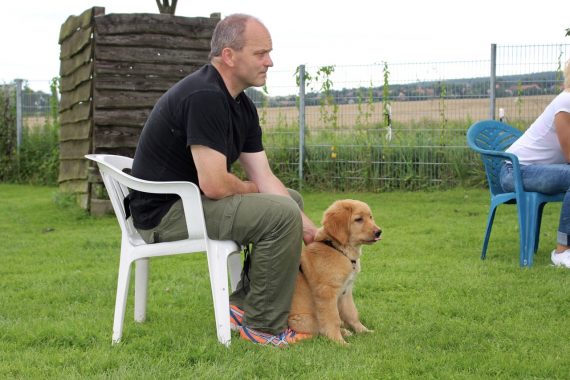Auch für Bolle war am vergangenen Samstag „Einschulung“. Sich alleine – ohne Nala – vom Nest zu entfernen, ist schon etwas Besonderes und Herausforderndes. Dann aber allein mit anderen Welpen im Stuhlkreis zu sitzen, ist schon aufregend. Wenn Bolle etwas sehr gut beherrscht, ist es, dann losgelöst vom Getue oder Gekläffe anderer sehr entspannt zu bleiben.