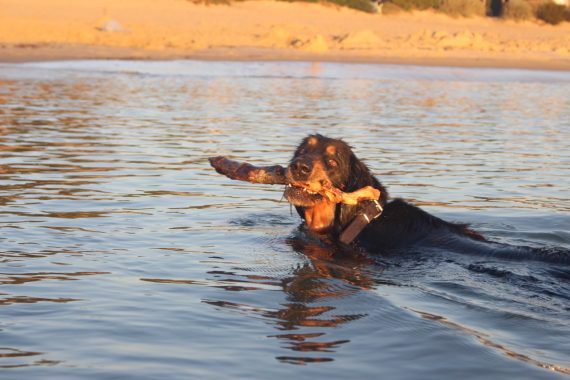 Auch beim Thema Schwimmen war es Nalas Vorbild zu verdanken, dass Bolle gemeinsam mit uns ins Meer zum Schwimmen gegangen ist!