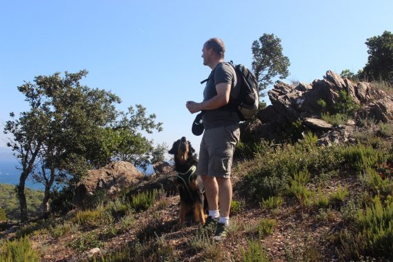 Dank der sommerlichen Temperaturen haben die beiden immer wieder gerne die Abkühlung im Mittelmeer gesucht, Bolle hat sich mit Wonne im getrockneten Seegras am Strand gewältzt und bei den Wanderungen war die große Wasserflasche für die Hunde-Trinkpausen unser steter Begleiter.