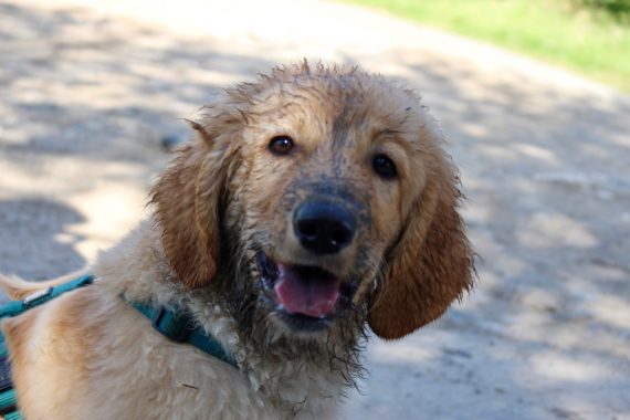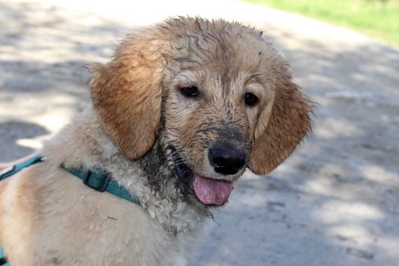 Rala hat zum Abschluss vor dem Besteigen des Autos noch schnell ein Schlamm-Wasserbad im Bach genommen – ein echter Gardesser Wasserwart 🙂