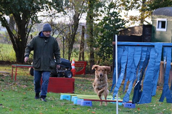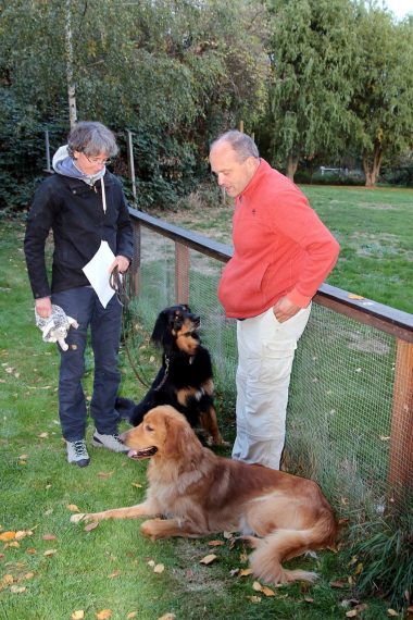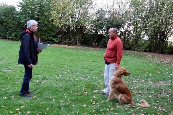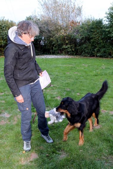 Am 20.10. fand die Ortsgruppen-interne Prüfung statt. Mensch und Hund waren verschiedenen Anforderungen ausgesetzt, denn Thomas Kaiser hatte sich wieder allerlei einfallen lassen, um uns auf die Probe zu stellen. Erst einmal mussten wir Zweibeiner einen Theorie-Block bewältigen und dann ging es für die Teams in den Ring.