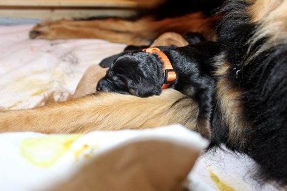 Ihre Milch fließt üppig, die Welpen nehmen täglich zwischen 40 und 70 g zu und wir füllen bei Nala mit verdünnter Ziegenmilch nach 🙂