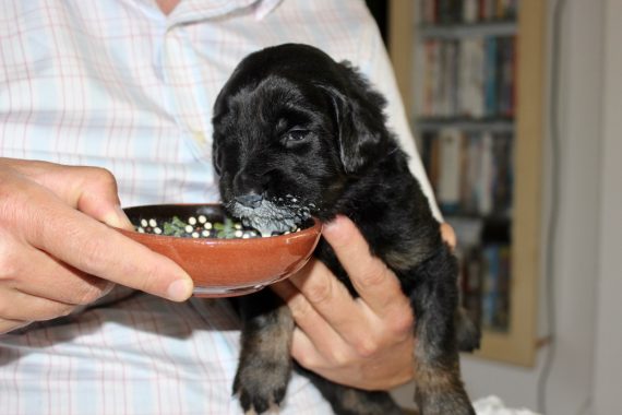 Donnerwetter! Milch muss man sich gar nicht immer mühsam an der Milchbar erkämpfen. Da gibt es auch Seen voller Milch, die Welpe nur schlabbern muss…Wobei einfach ist auch das nicht. Jedenfalls ist es von Vorteil, die Nase nicht voll einzutauchen, mehr Milch bekommt man dadurch nicht und irgendwie geht die Luft aus….