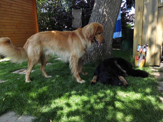 Auf einem gemeinsamen Spaziergang haben Beva und Bolle Wasser oder etwas ähnliches…. gesucht und gefunden. Farblich näherten sie sich einander an 🙂