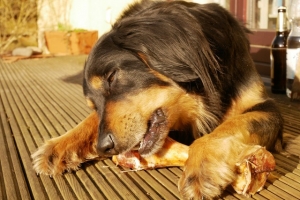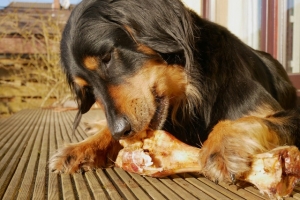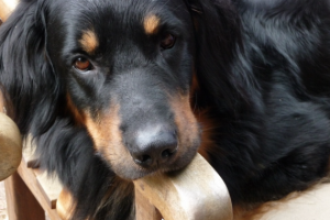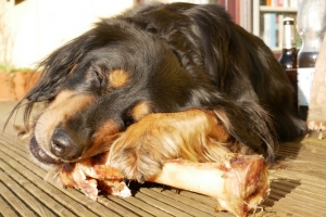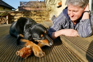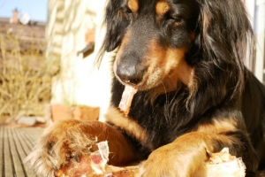 Zuhause durfte sich Nala den Pferdeknochen, den sie als Geschenk von Christian und Gudrun bei deren Besuch bekommen hatte, genussvoll vornehmen. Und wie ihr seht, es hat geschmeckt.