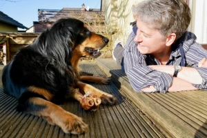 Die Wahl fiel auf Bandito vom Mühlendamm, genannt Carlson, im Besitz von Bettina und Dieter Schröder! Und die beiden waren Gott sei dank so flexibel, dass wir am Morgen des 11.3. bei ihnen anrufen, deren Zusage zur Deckmöglichkeit erhalten konnten, und uns um 12.30 Uhr in Habichtswald mit Unterstützung von Maria-Magdalena Siepe-Gunkel (Zuchtwartin Mitte) zum Decken treffen konnten.