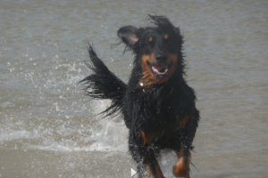 Carlson alias Bandito vom Mühlendamm (s. Fotos rechts) ist der Sohn von dem blonden Fiete Faran von Finas Stern, dem Vater unseres A-Wurfs, und der schwarzmarkenen Hündin Ruby vom Kloster Rohrbach.